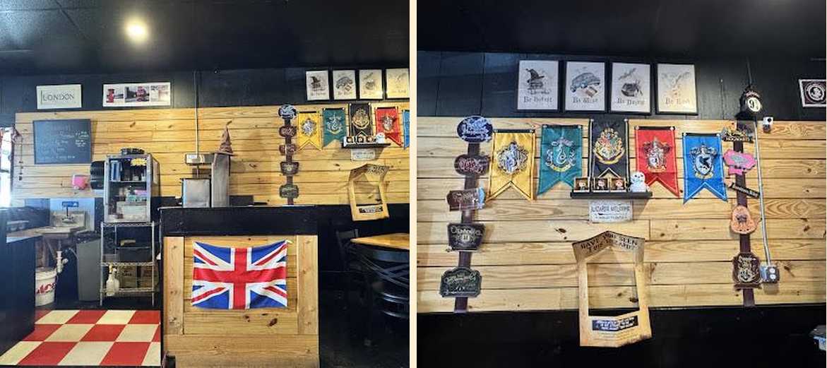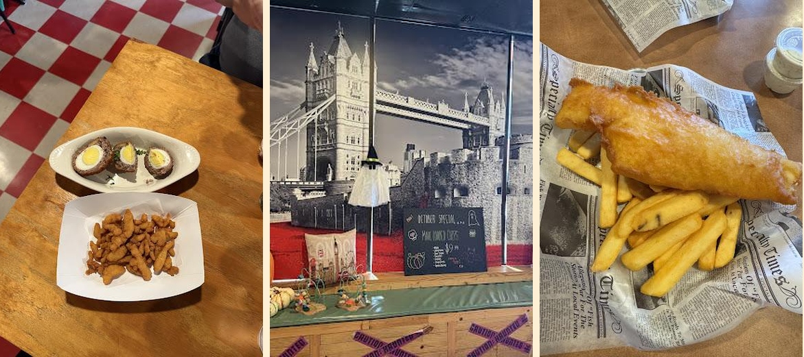 The restaurant's decor is charming, featuring British memorabilia that transports diners to a classic pub atmosphere. The friendly staff adds to the experience, ensuring every guest feels right at home.
